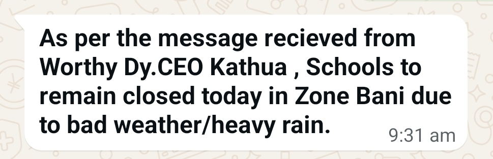 BANI, APRIL 4: All schools in Zone Bani remained closed today due to continuous heavy rainfall and adverse weather conditions in the region.